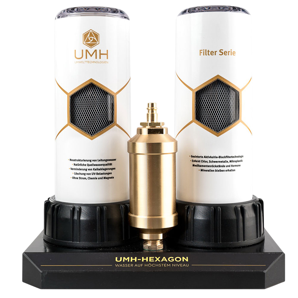 Hexagon ist das Herzstück unserer ganzheitlichen Wasseraufbereitung. Es ist die Veredelungsstufe, in der gereinigtes Wasser nicht nur sauber wird, sondern lebendig, fein, weich und energetisch harmonisiert – so, wie es natürlicherweise in klaren Bergquellen vorkommt.